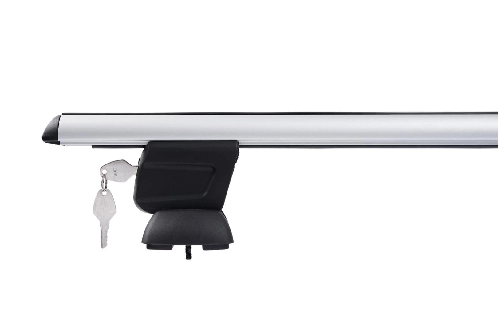 Kanał na spodzie belki umożliwia regulację rozstawu stóp bagażnika, dzięki czemu ten sam zestaw może zostać użyty w większości samochodów posiadających fabryczne punty montażowe (pionowe gwinty).