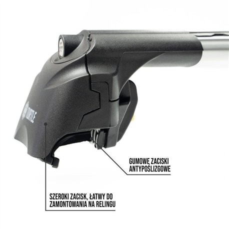 Dla zwiększenia poziomu ochrony mocowania do relingów zostały wyposażone w metalowe zamki zabezpieczające.