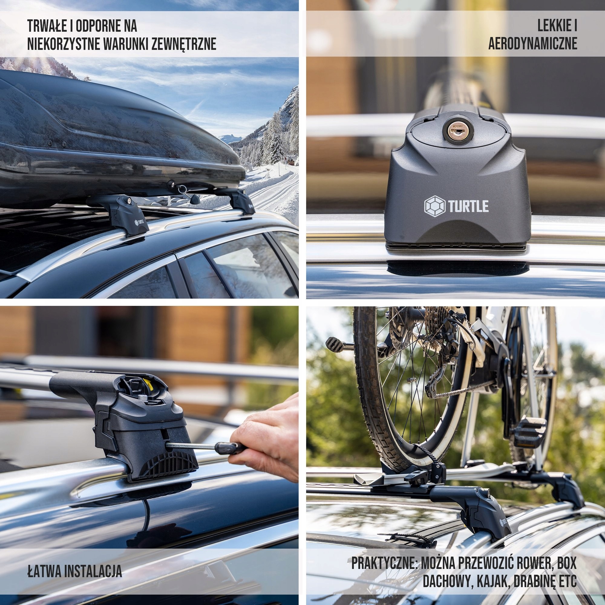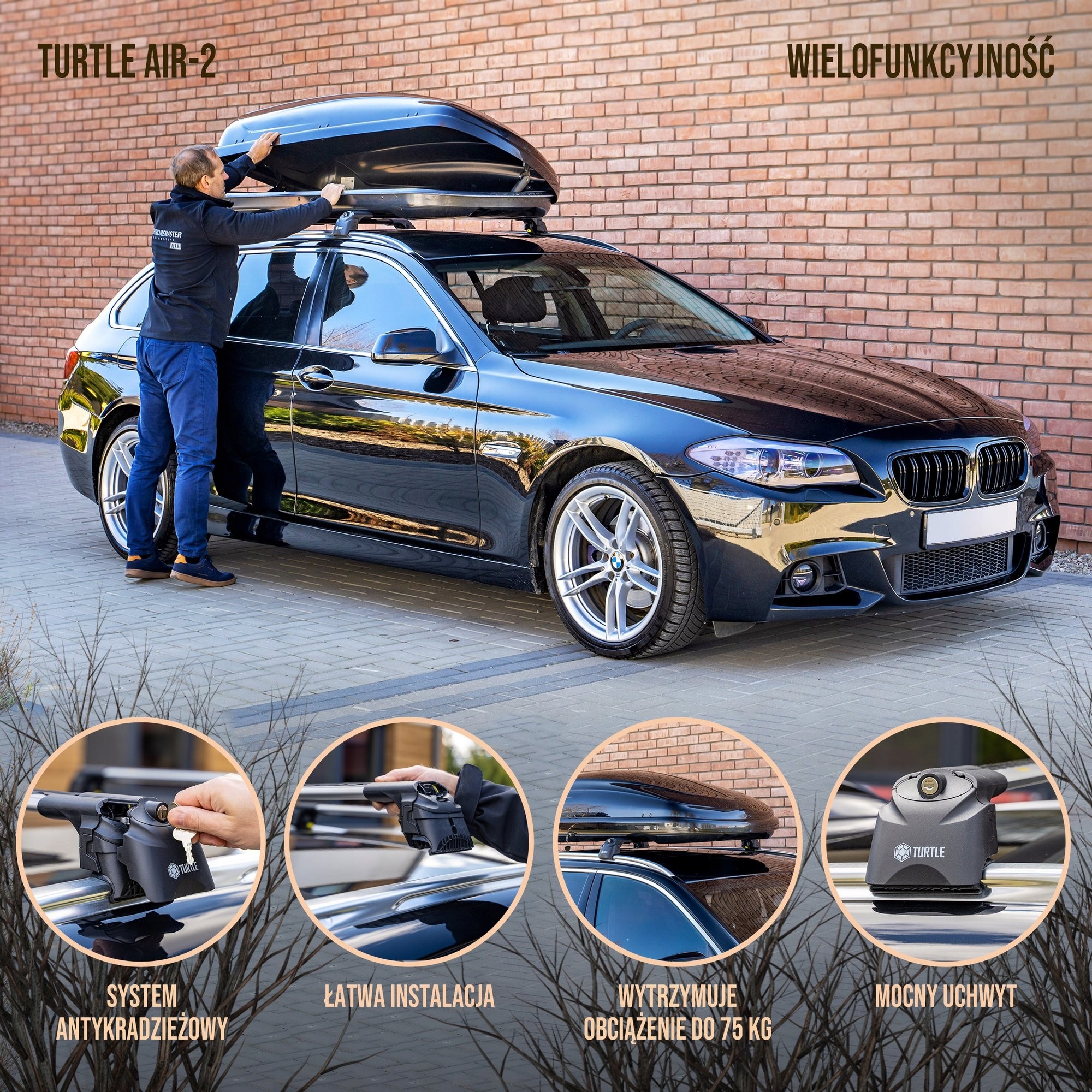 TURTLE AIR 2 to nowoczesny bagażnik, który posiada aluminiowe, aerodynamiczne belki. Poprzeczki zostały zaprojektowane tak aby zminimalizować poziom hałasu i wpływać korzystnie na zużycie paliwa.