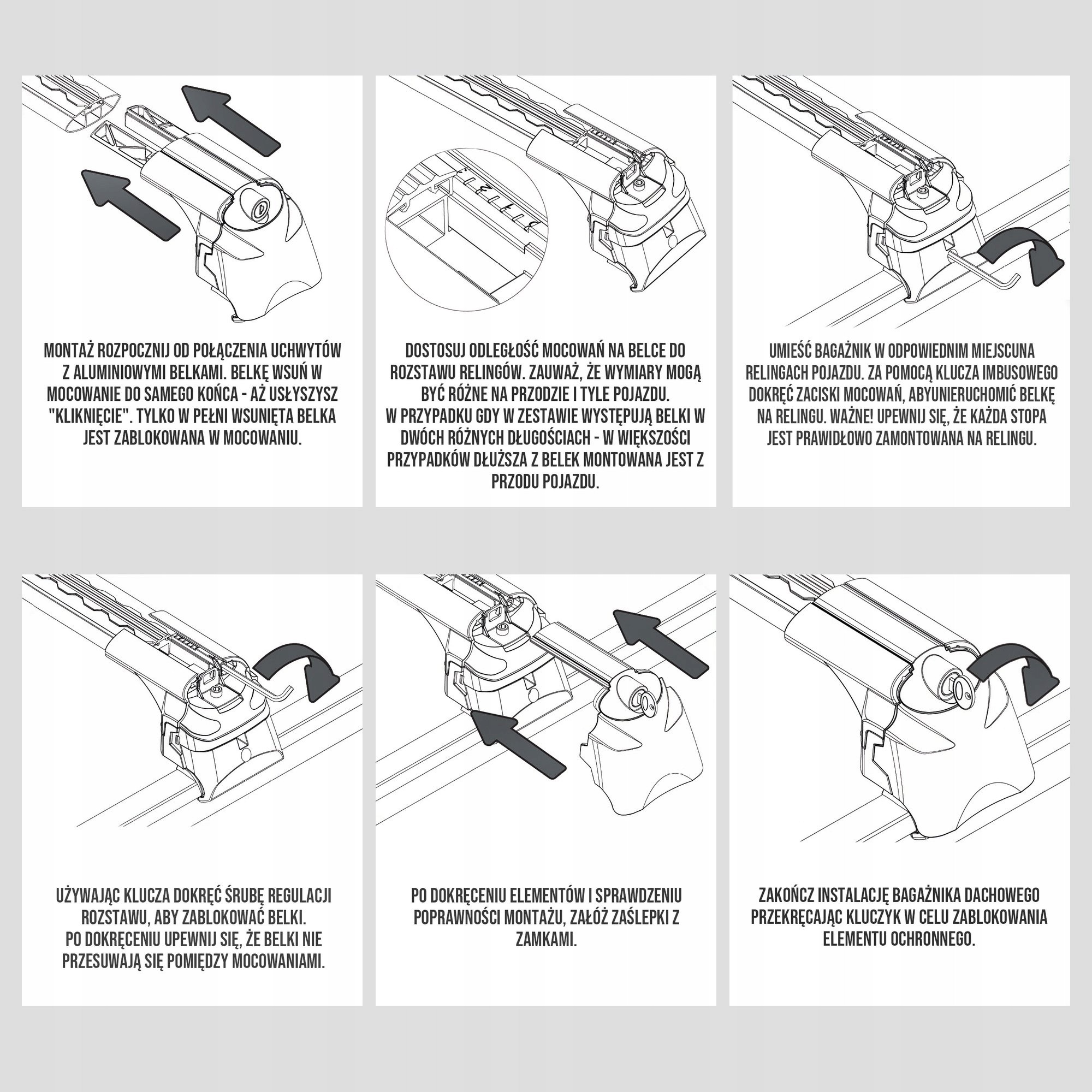 Dla zwiększenia poziomu ochrony mocowania do relingów zostały wyposażone w metalowe zamki zabezpieczające.
