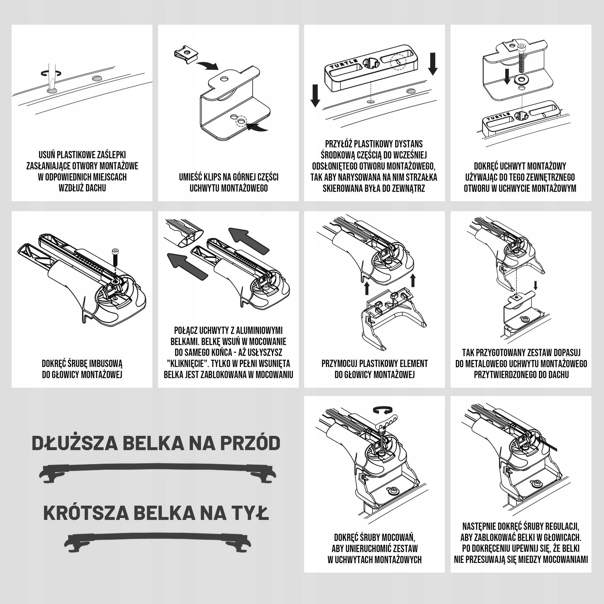Dzięki zastosowaniu rowka T Belki pasują do większości dostępnych na rynku akcesoriów (box dachowy, uchwyty na nart, uchwyty na rower).