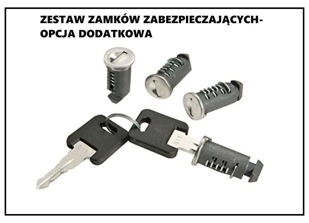 ✅ Zabezpieczenie antykradzieżowe – nie, zamki występują jako opcja.