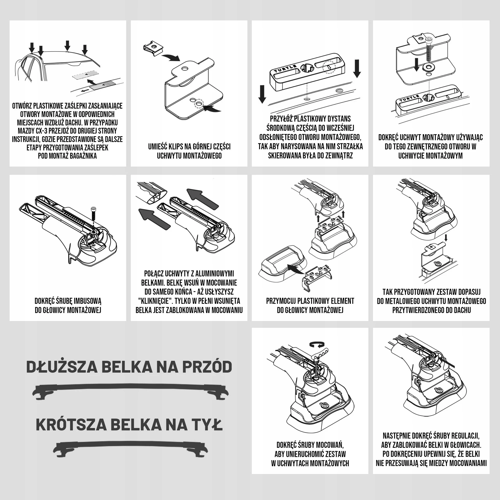 Dzięki zastosowaniu rowka T Belki pasują do większości dostępnych na rynku akcesoriów (box dachowy, uchwyty na nart, uchwyty na rower).