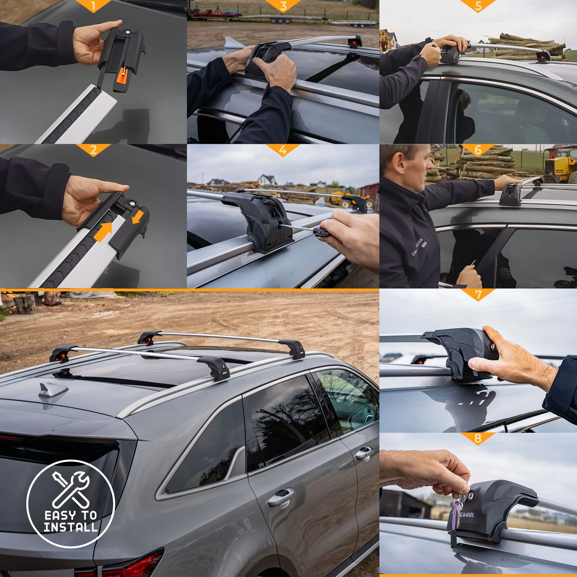 - ✔️ Szybki i bezpieczny montaż - stabilne mocowanie poprzeczek na relingach bez użycia specjalistycznych narzędzi.