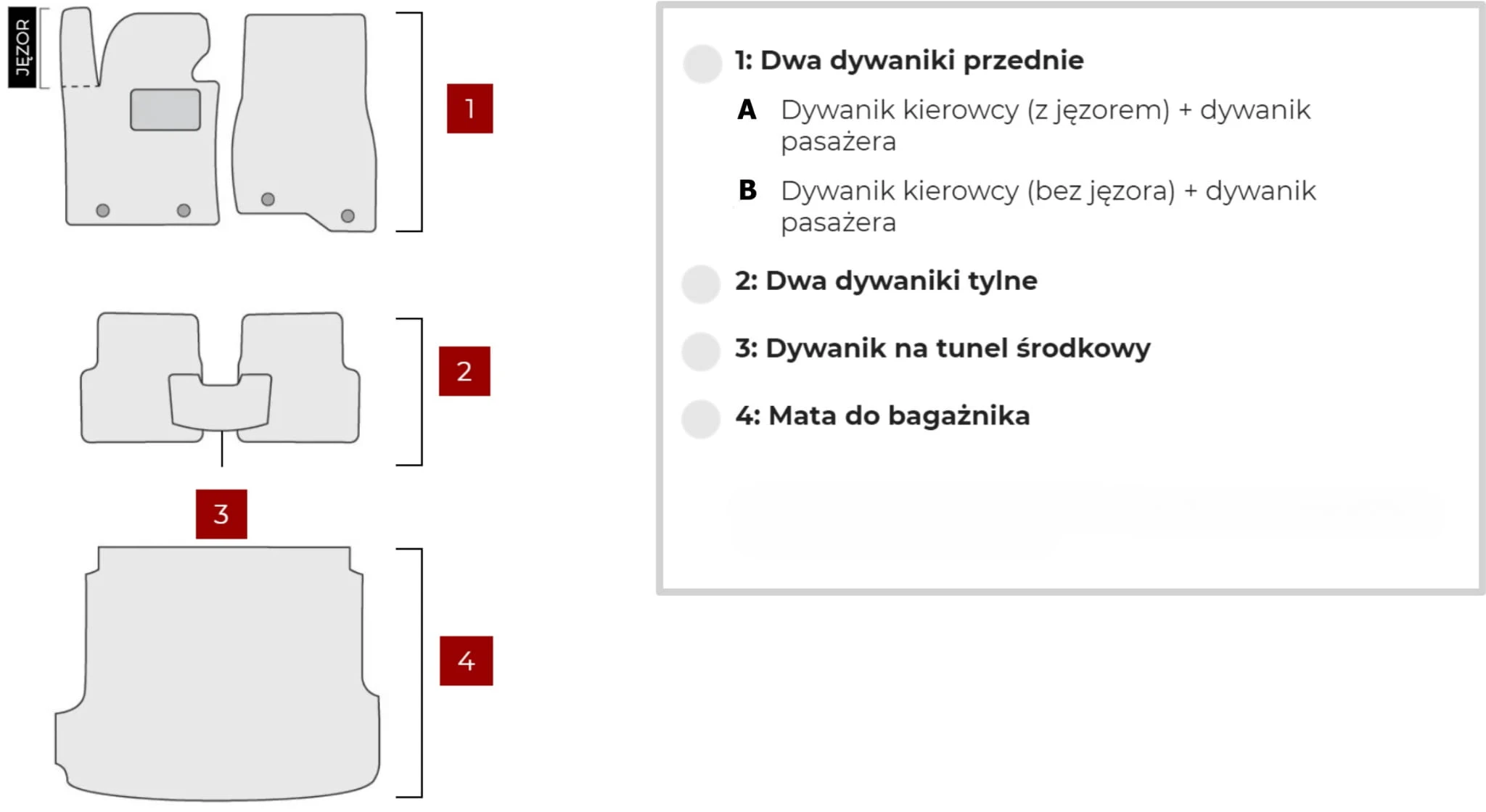 Dywaniki produkowane są na indywidualne zamówienie, dlatego prosimy o dokładne wypełnienie szczegółów dotyczących auta w konfiguratorze.
