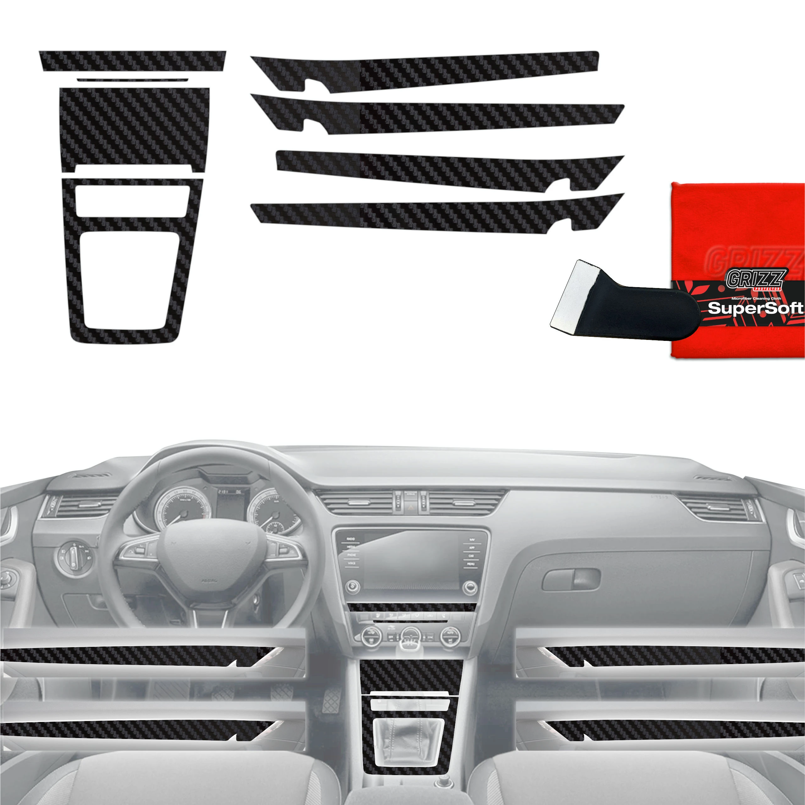 Folia do wnętrza Skoda Octavia III FL (2017-2020) GRIZZ 8w1 Karbonowa Antyodciskowa