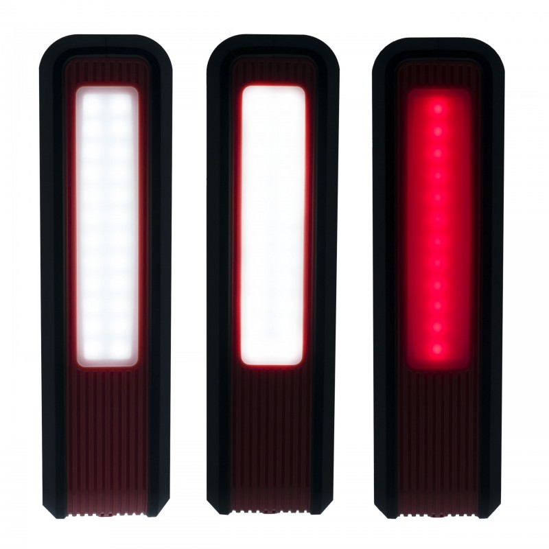 Lampka LED: 5 W (biała – 2 poziomy jasności, czerwona – migająca)