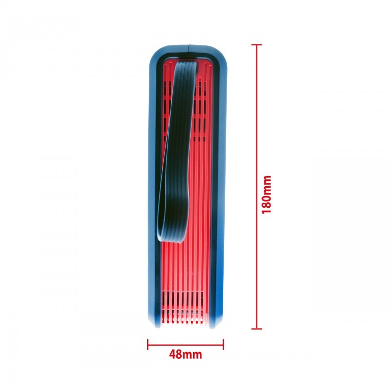 Dodatkowym atutem jest wbudowana lampka LED o mocy 5 W, która oferuje dwa poziomy jasności światła białego oraz czerwone światło awaryjne z funkcją migania – idealne do oznaczenia postoju na poboczu lub pracy nocą.