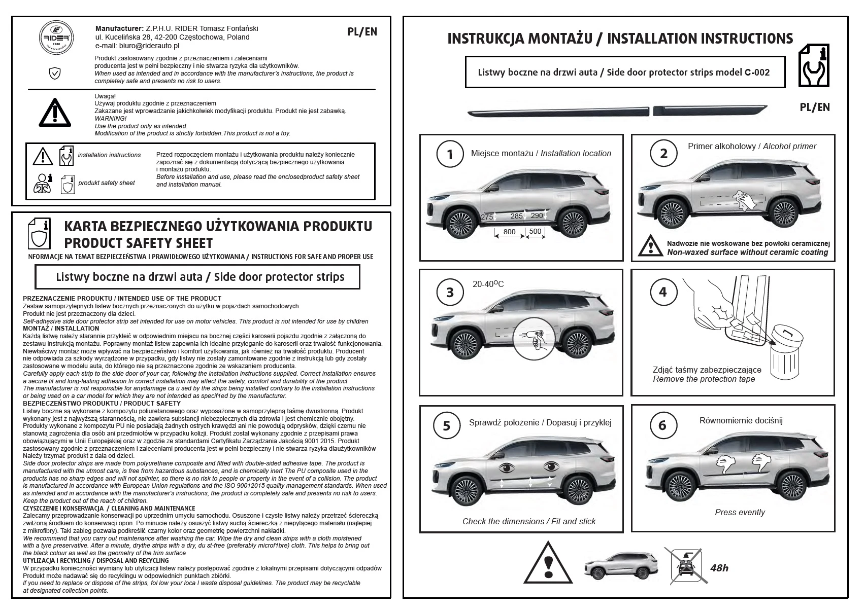 Zastosowana taśma 3M gwarantuje idealne przyleganie listew do karoserii samochodu. Prawidłowo zamocowane listwy (zgodnie z instrukcją) będą służyły przez długie lata.