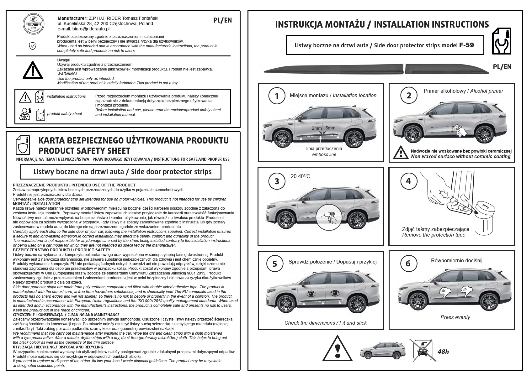 Zastosowana taśma 3M gwarantuje idealne przyleganie listew do karoserii samochodu. Prawidłowo zamocowane listwy (zgodnie z instrukcją) będą służyły przez długie lata.