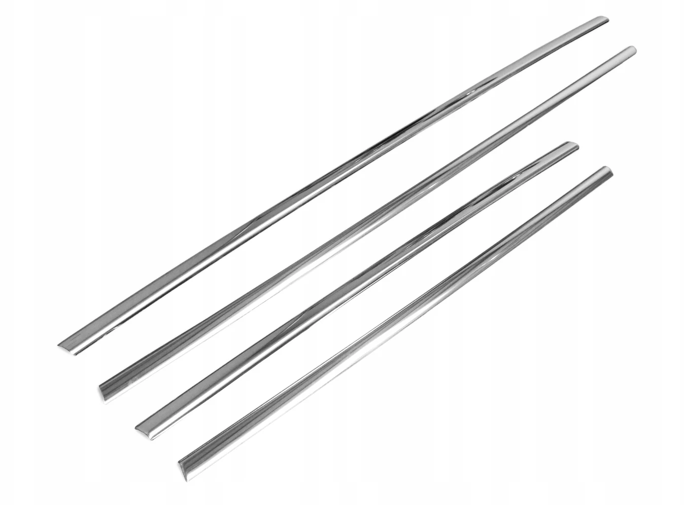 Listwy pod szyby są dedykowane do aut, które nie posiadają fabrycznych listew chrom. Produkt jest naklejany za pomocą taśmy 3M na czarne uszczelki.