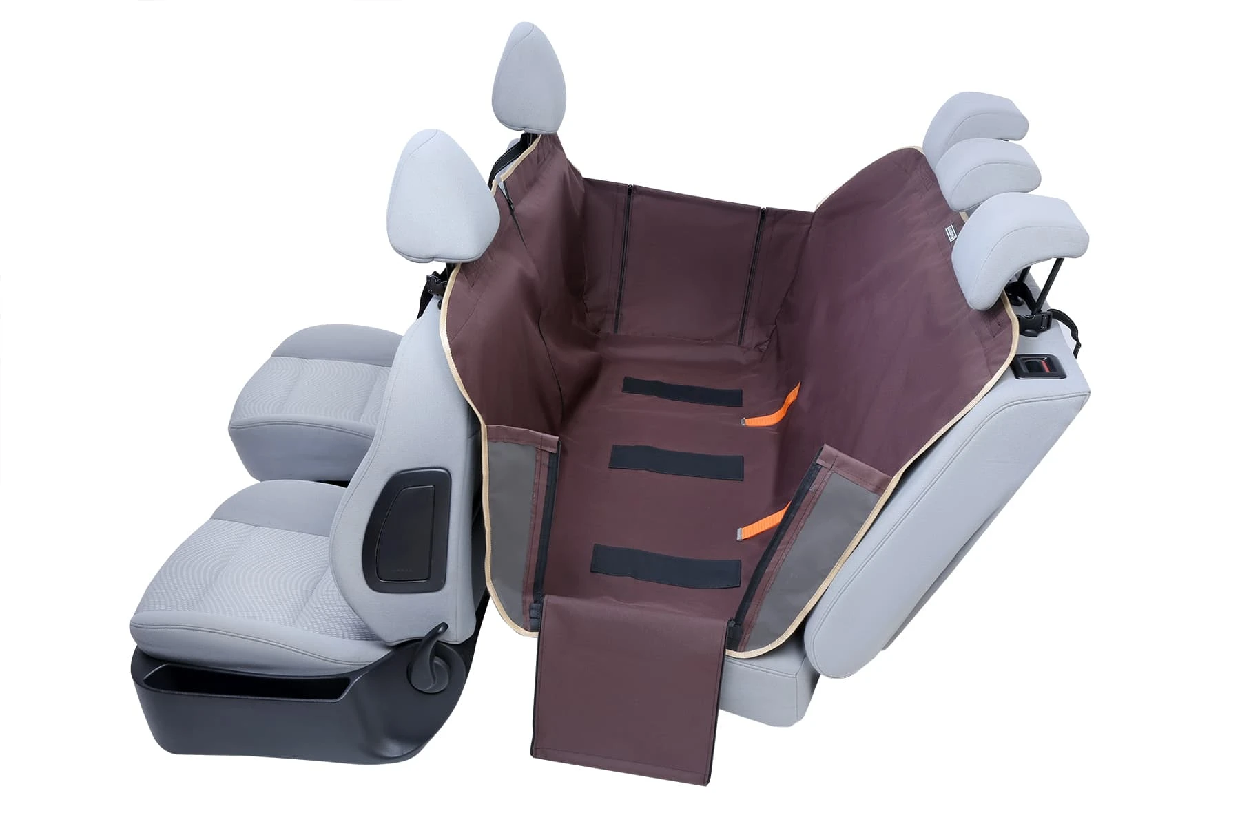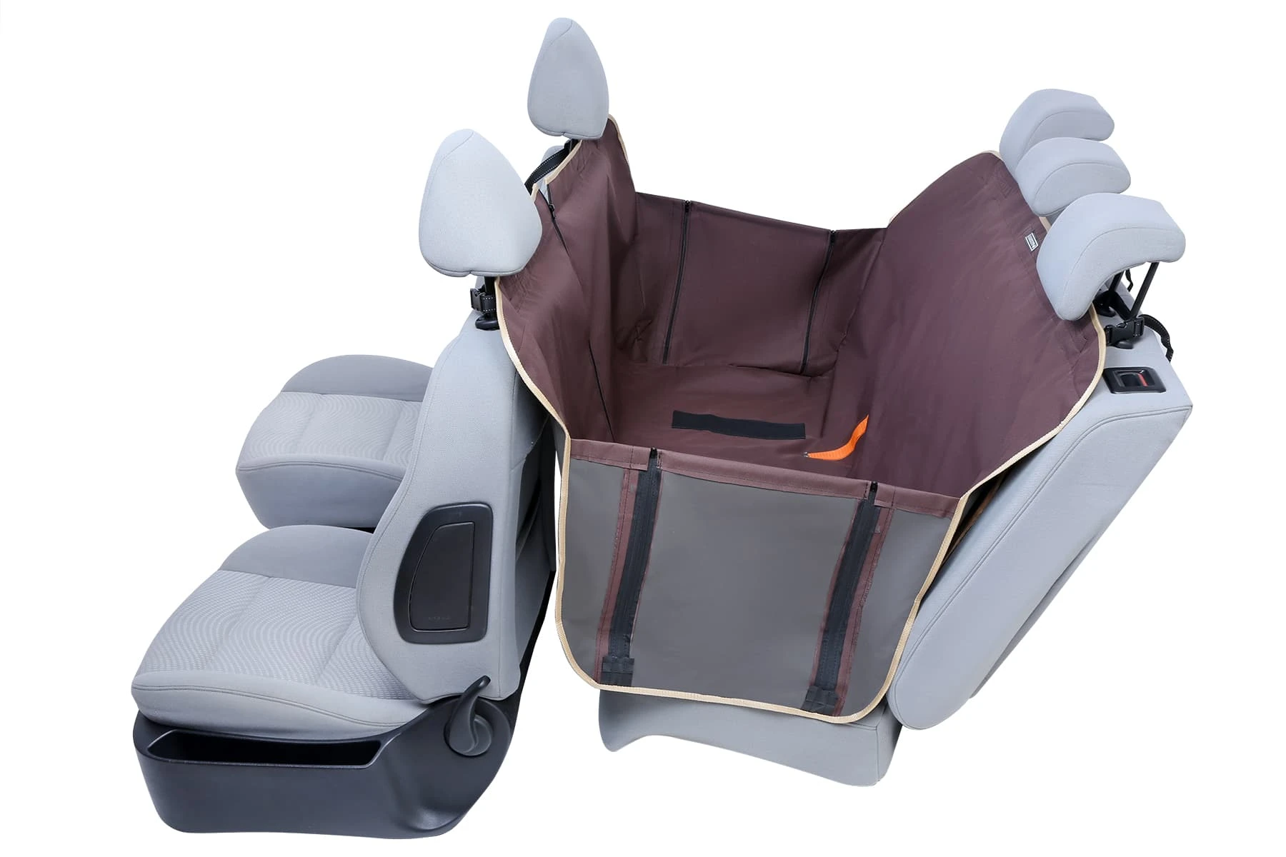 Wersja z bokami i zamkiem – Stabilne usztywniane boki chronią drzwi i tapicerkę oraz boczną krawędź fotela przed zanieczyszczeniami. Zamek umożliwia jednoczesne przewożenie psa wraz z pasażerem (wystarczy odpiąć zamek i klamerkę z zagłówka)