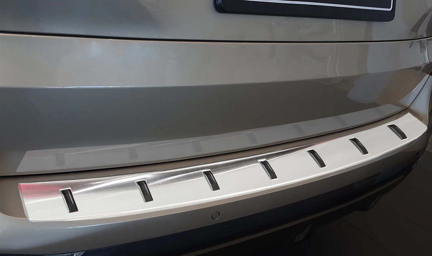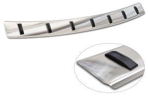 Nakładka ochronna na zderzak to najlepsza ochrona dla twojego auta. Stalowa listwa nie tylko dodaje elegancji, ale również zapobiega porysowaniu. Zagięta nakładka na zderzak chroni najbardziej newralgiczne miejsca na tylnym zderzaku. Linii STRONG EDITION to stal o grubości 0,8 mm co sprawia, że nakładka jest odporna na wygięcia. Charakterystyczny element dekoracyjny w postaci żeberek, zamontowanych w bazowej nakładce w przetłoczonych wpustach, przykuwa uwagę swoim niepowtarzalnym designem. Wykonano je z termoplastycznego poliuretanu EPAMOULD, charakteryzującego się dużą wytrzymałością na odkształcenia oraz ponadprzeciętną trwałością.