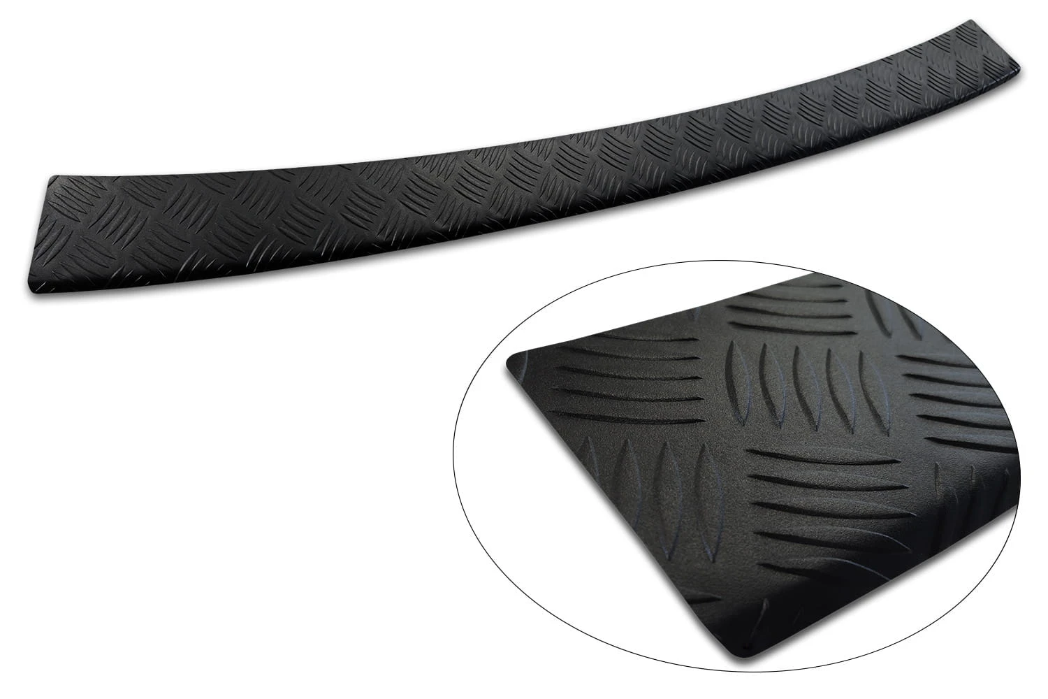 Nakładka ochronna na zderzak z aluminium ryflowanego to produkt bardzo wytrzymały, który sprawdzi się w autach dostawczych i o wysokim załadunku typu SUV. Aluminiowa listwa nie tylko dodaje elegancji, ale również zapobiega porysowaniu zderzaka. Produkt malowany jest na kolor czarny. Zagięta nakładka chroni najbardziej newralgiczne miejsca na tylnym zderzaku.