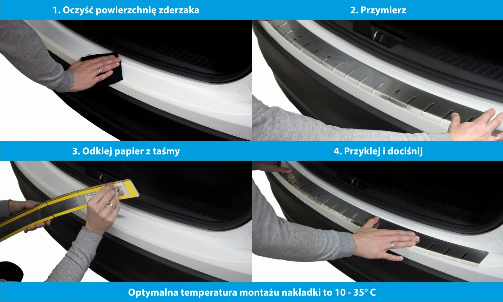 Nakładka ochronna na zderzak to najlepsza ochrona dla twojego auta. Aluminiowa listwa nie tylko dodaje elegancji, ale również zapobiega porysowaniu zderzaka. Produkt malowany jest na kolor czarny proszkowo. Zagięta nakładka chroni najbardziej newralgiczne miejsca na tylnym zderzaku.