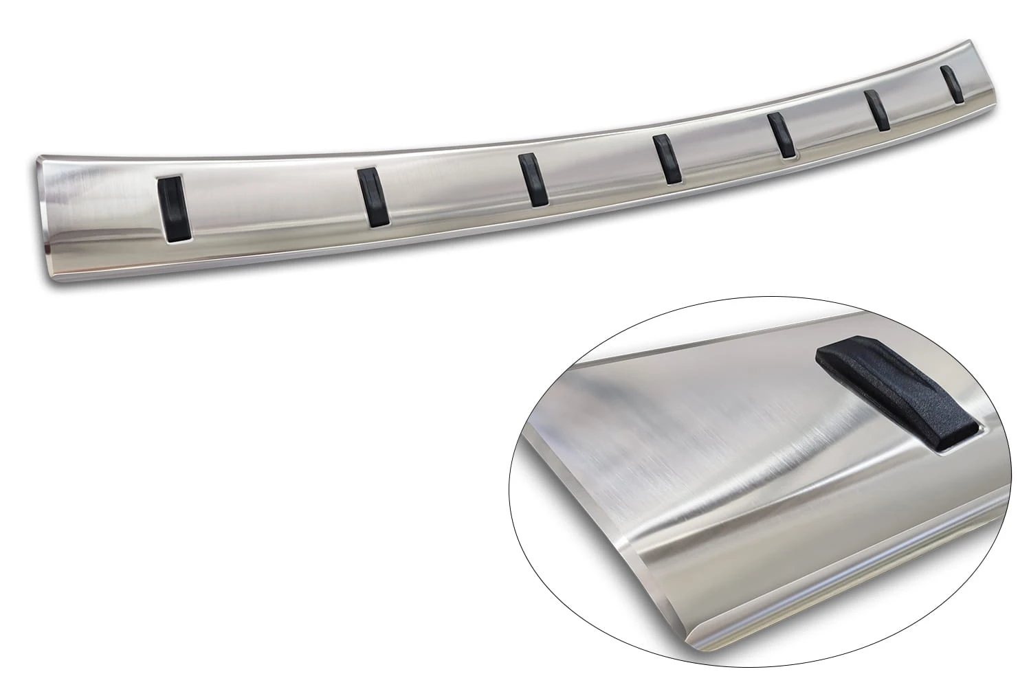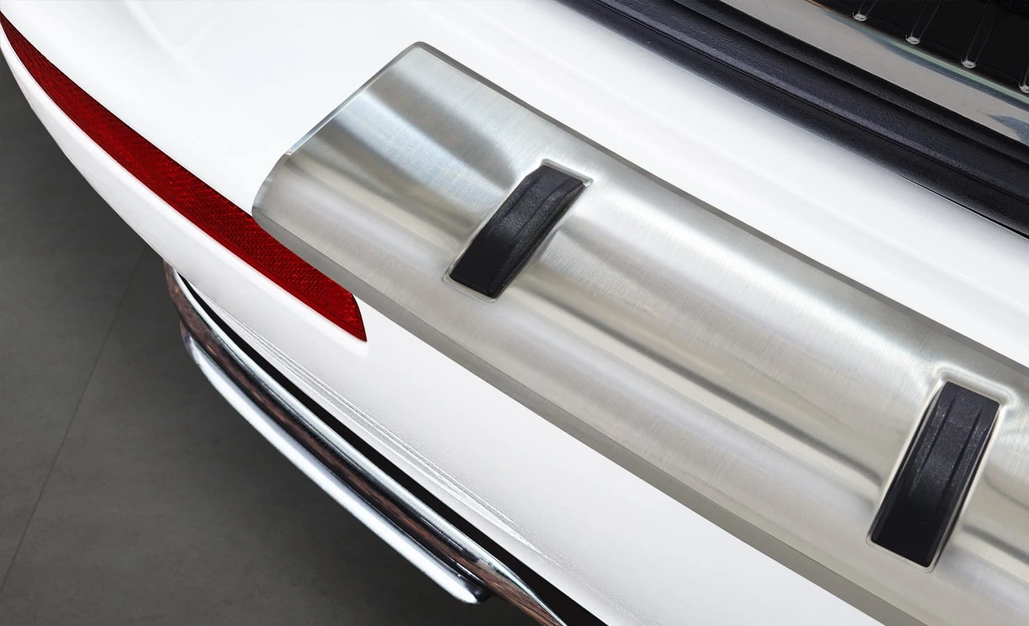 Nakładka ochronna na zderzak to najlepsza ochrona dla twojego auta. Stalowa listwa nie tylko dodaje elegancji, ale również zapobiega porysowaniu. Zagięta nakładka na zderzak chroni najbardziej newralgiczne miejsca na tylnym zderzaku. Linii STRONG EDITION to stal o grubości 0,8 mm co sprawia, że nakładka jest odporna na wygięcia. Charakterystyczny element dekoracyjny w postaci żeberek, zamontowanych w bazowej nakładce w przetłoczonych wpustach, przykuwa uwagę swoim niepowtarzalnym designem. Wykonano je z termoplastycznego poliuretanu EPAMOULD, charakteryzującego się dużą wytrzymałością na odkształcenia oraz ponadprzeciętną trwałością.
