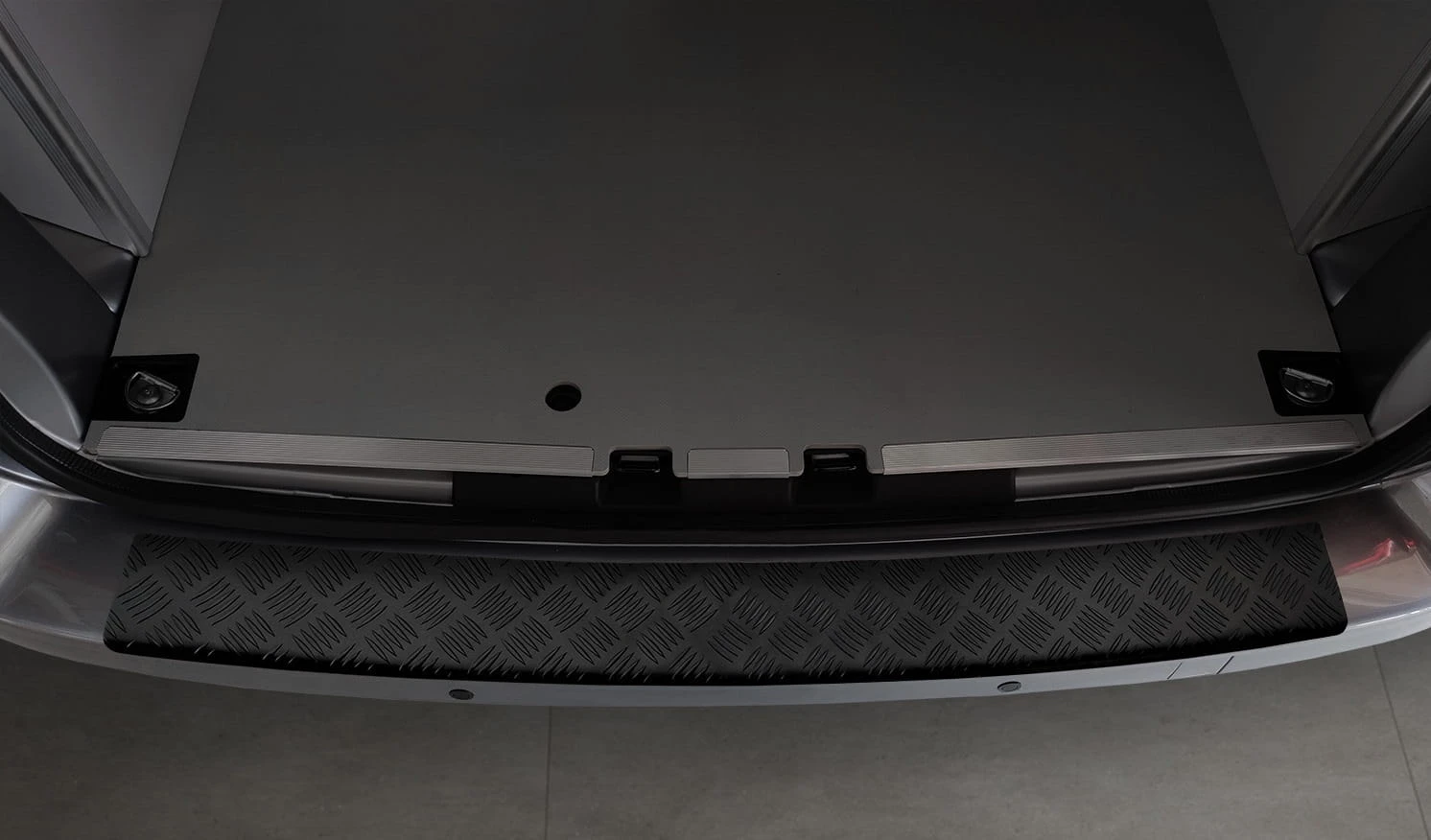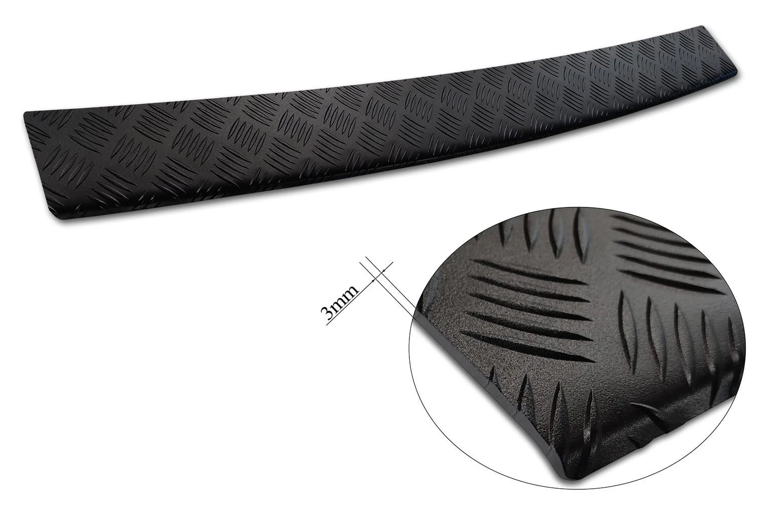 Nakładka ochronna na zderzak z aluminium ryflowanego to produkt bardzo wytrzymały, który sprawdzi się w autach dostawczych i o wysokim załadunku typu SUV. Aluminiowa listwa nie tylko dodaje elegancji, ale również zapobiega porysowaniu zderzaka. Produkt malowany jest na kolor czarny. Zagięta nakładka chroni najbardziej newralgiczne miejsca na tylnym zderzaku.