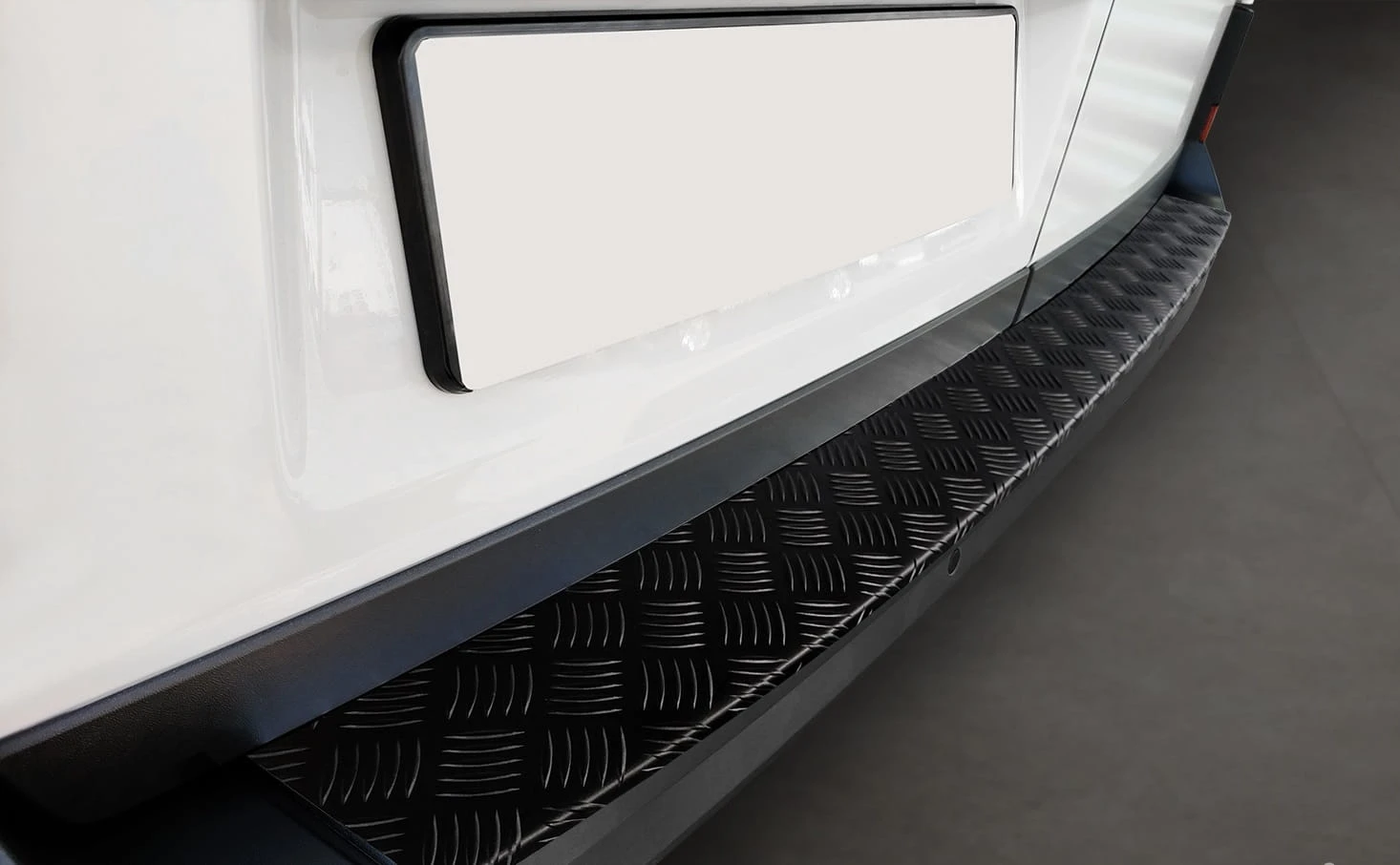Nakładka ochronna na zderzak z aluminium ryflowanego to produkt bardzo wytrzymały, który sprawdzi się w autach dostawczych i o wysokim załadunku typu SUV. Aluminiowa listwa nie tylko dodaje elegancji, ale również zapobiega porysowaniu zderzaka. Produkt malowany jest na kolor czarny. Zagięta nakładka chroni najbardziej newralgiczne miejsca na tylnym zderzaku.