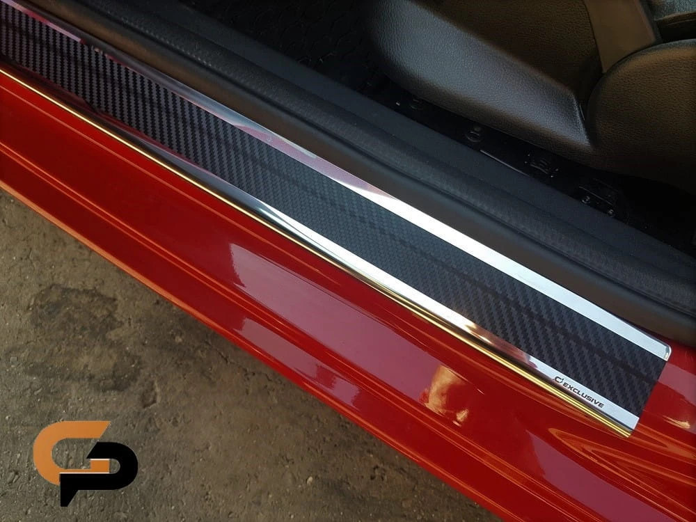 Listwy wykonane są ze stali szlachetnej i dodatkowo oklejone folią carbon. Nakładki dzięki okleinie są jeszcze bardziej odporne na zarysowania niż standardowe listwy stalowe.