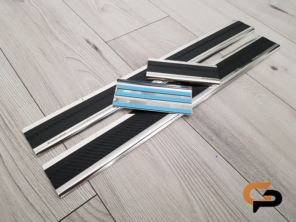 Listwy wykonane są ze stali szlachetnej i dodatkowo oklejone folią carbon. Nakładki dzięki okleinie są jeszcze bardziej odporne na zarysowania niż standardowe listwy stalowe.