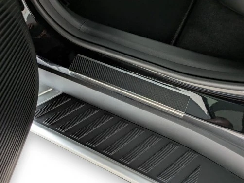 Listwy wykonane są ze stali szlachetnej i dodatkowo oklejone folią carbon. Nakładki dzięki okleinie są jeszcze bardziej odporne na zarysowania niż standardowe listwy stalowe.