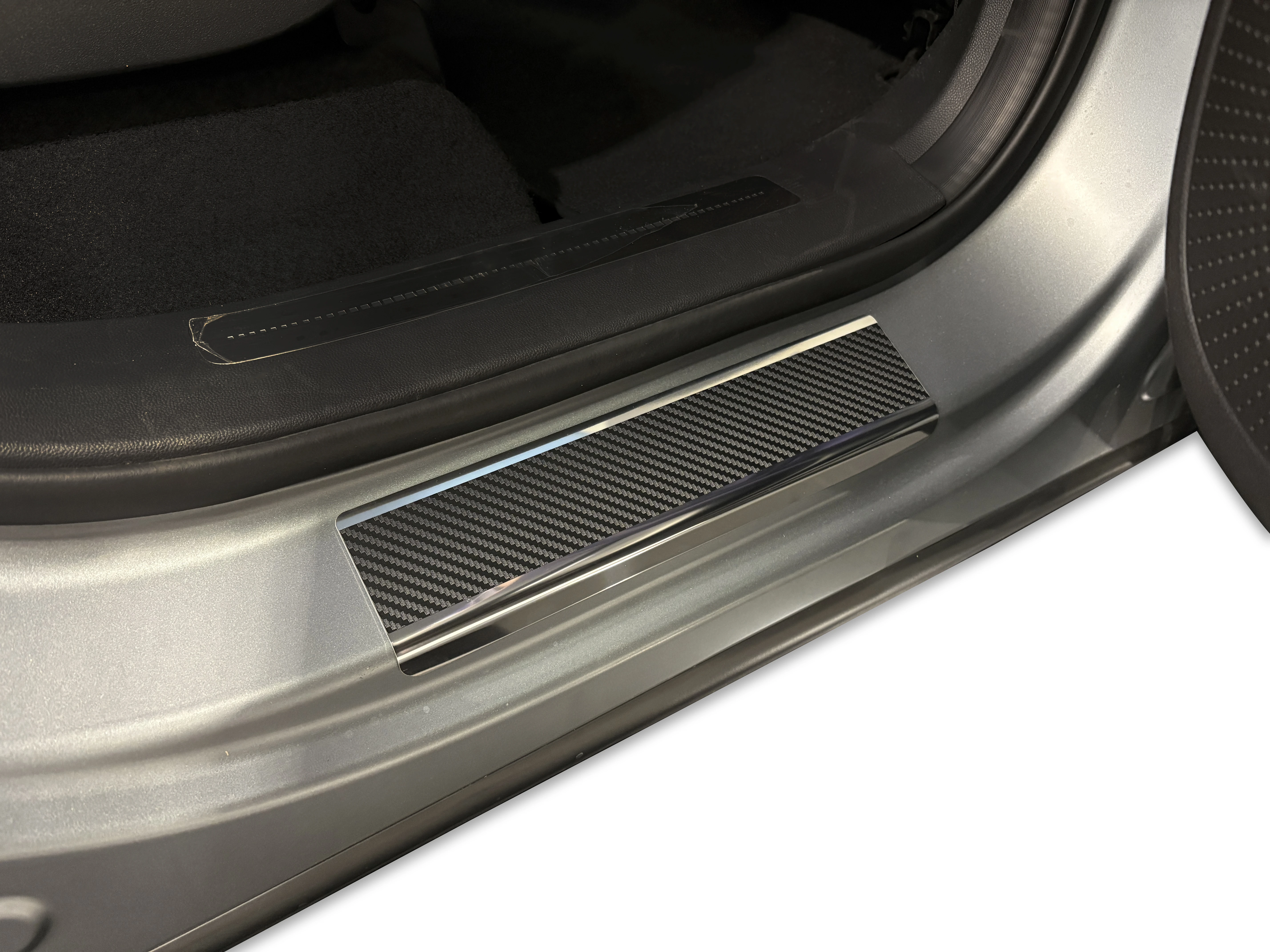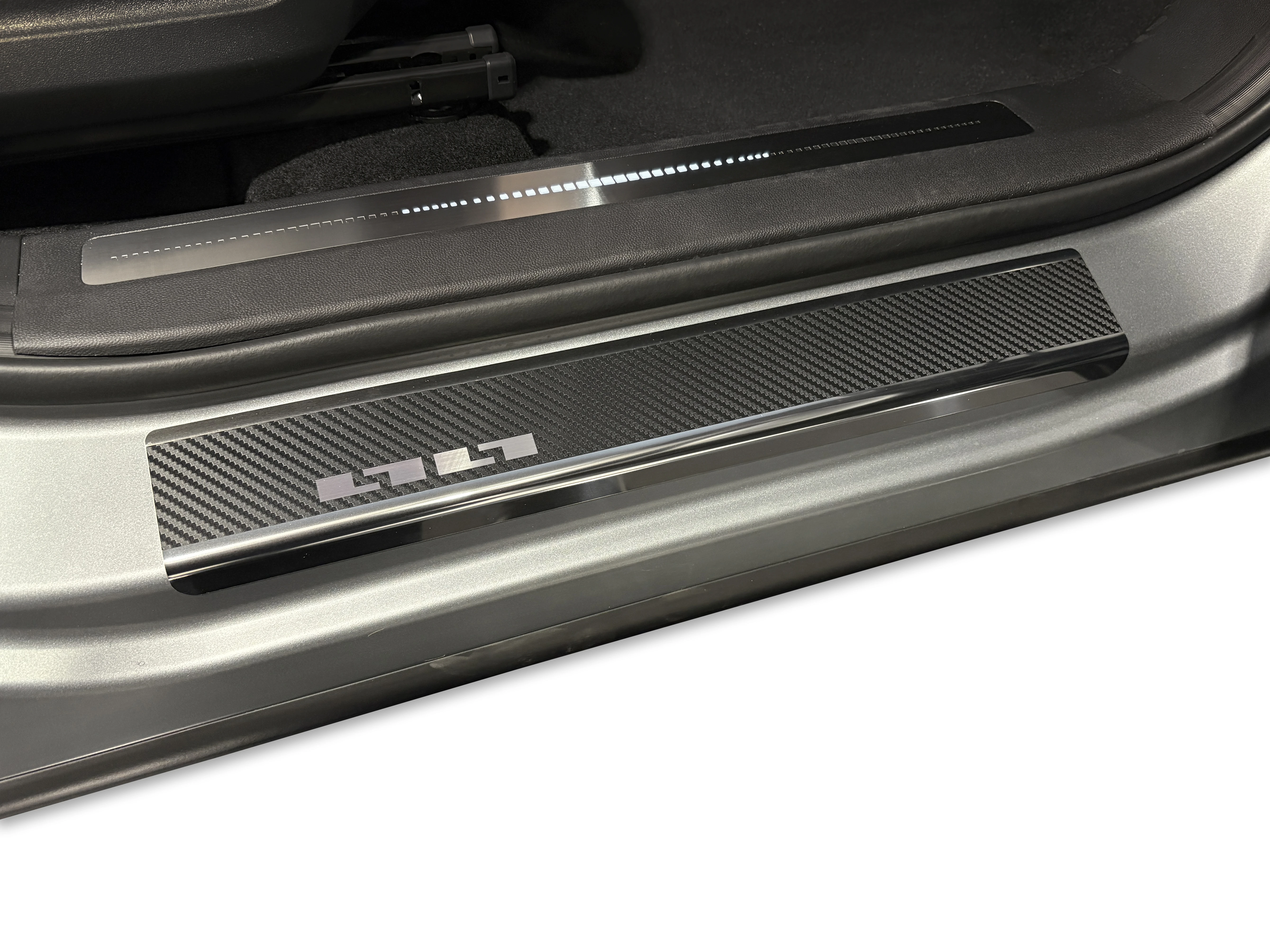 Listwy wykonane są ze stali szlachetnej i dodatkowo oklejone folią carbon. Nakładki dzięki okleinie są jeszcze bardziej odporne na zarysowania niż standardowe listwy stalowe.