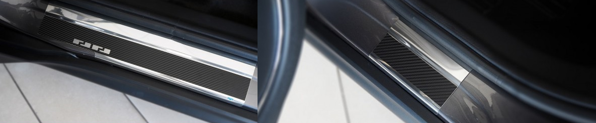 Listwy wykonane są ze stali szlachetnej i dodatkowo oklejone folią carbon. Nakładki dzięki okleinie są jeszcze bardziej odporne na zarysowania niż standardowe listwy stalowe.