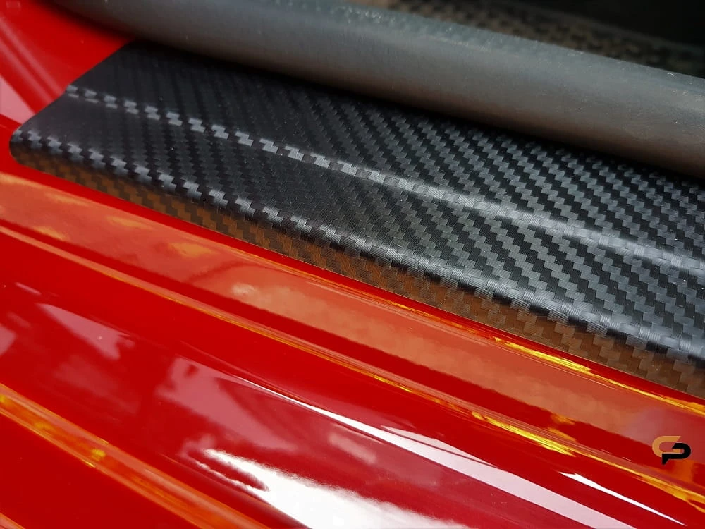 Listwy wykonane są ze stali szlachetnej i dodatkowo oklejone folią carbon. Nakładki dzięki okleinie są jeszcze bardziej odporne na zarysowania niż standardowe listwy stalowe.