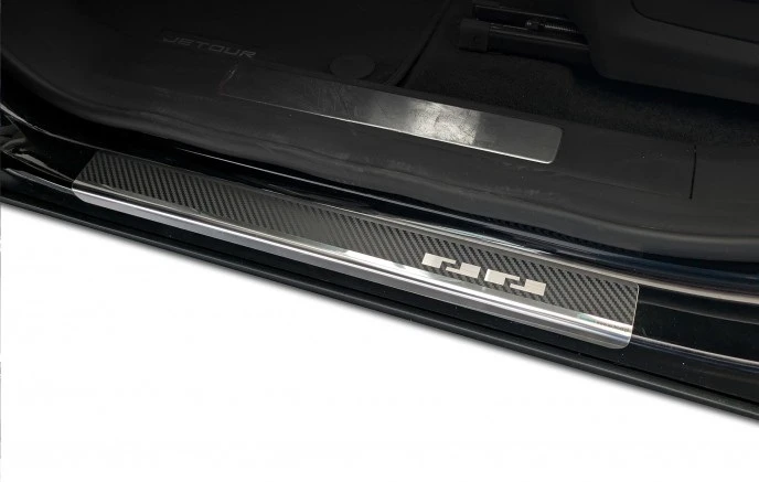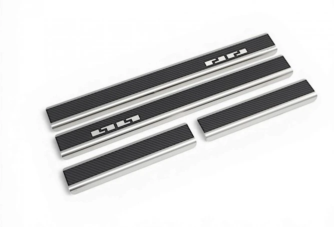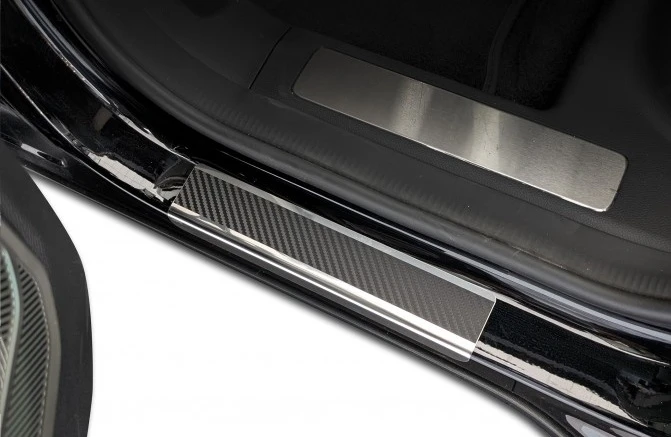 Listwy wykonane są ze stali szlachetnej i dodatkowo oklejone folią carbon. Nakładki dzięki okleinie są jeszcze bardziej odporne na zarysowania niż standardowe listwy stalowe.