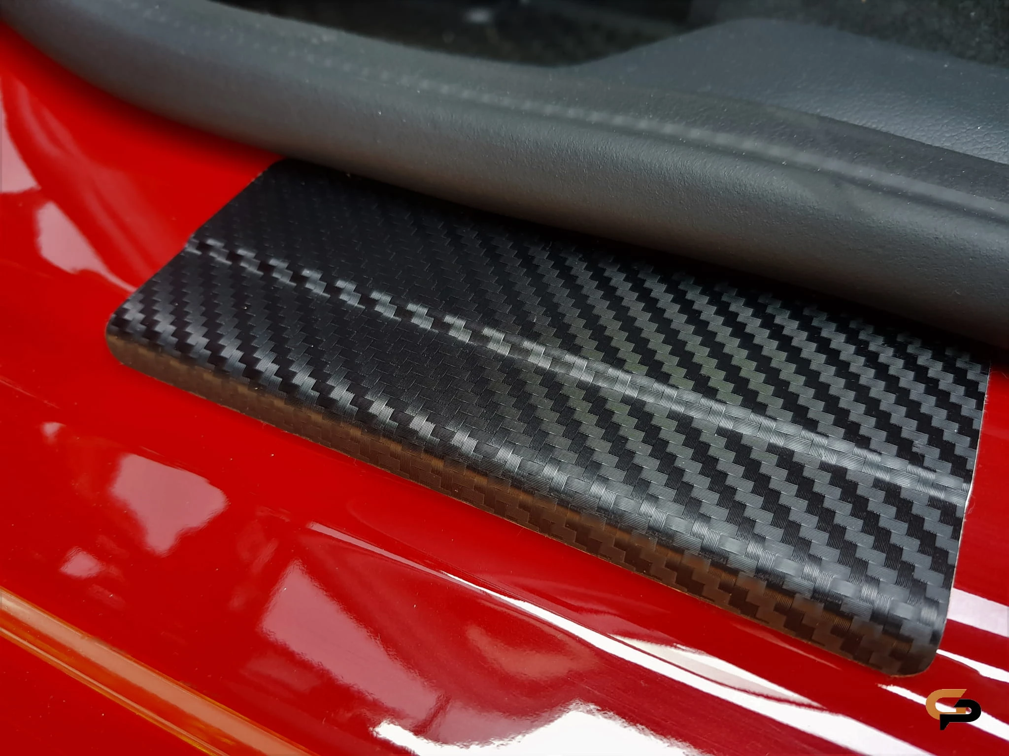 Listwy wykonane są ze stali szlachetnej i dodatkowo oklejone folią carbon. Nakładki dzięki okleinie są jeszcze bardziej odporne na zarysowania niż standardowe listwy stalowe.