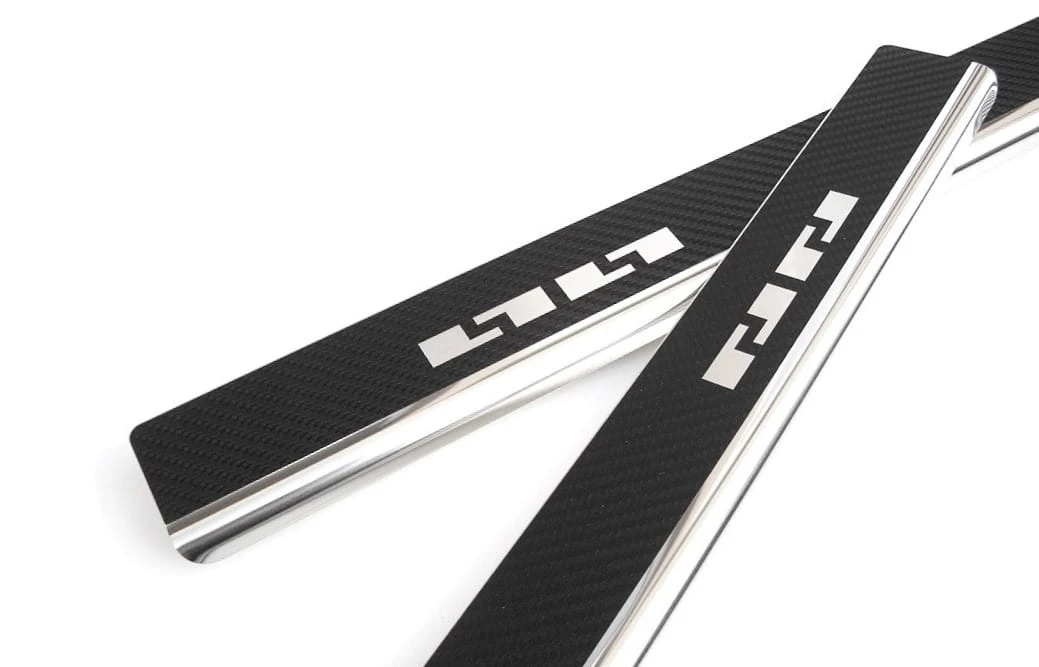 Listwy wykonane są ze stali szlachetnej i dodatkowo oklejone folią carbon. Nakładki dzięki okleinie są jeszcze bardziej odporne na zarysowania niż standardowe listwy stalowe.