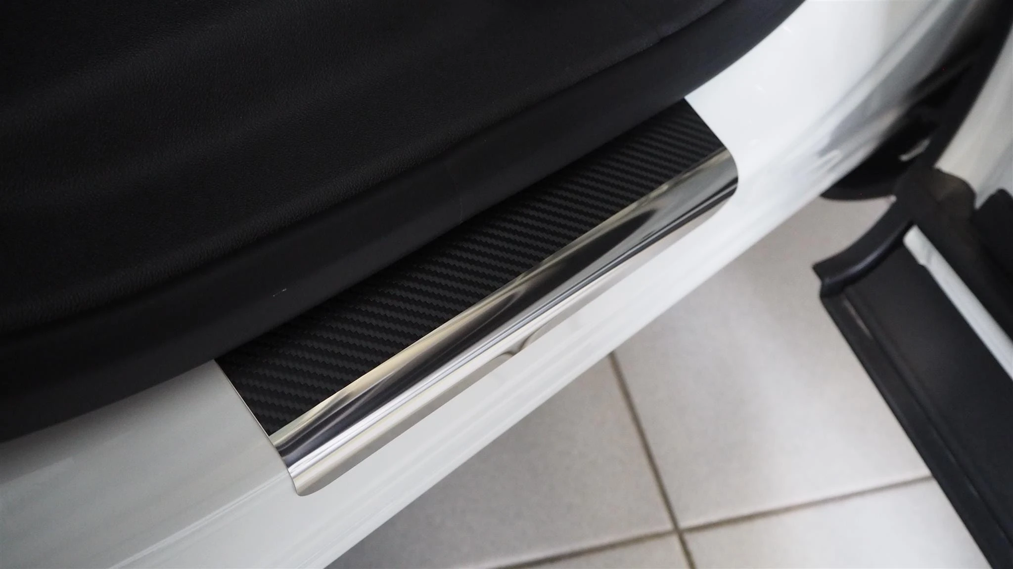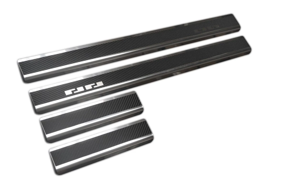 Listwy wykonane są ze stali szlachetnej i dodatkowo oklejone folią carbon. Nakładki dzięki okleinie są jeszcze bardziej odporne na zarysowania niż standardowe listwy stalowe.