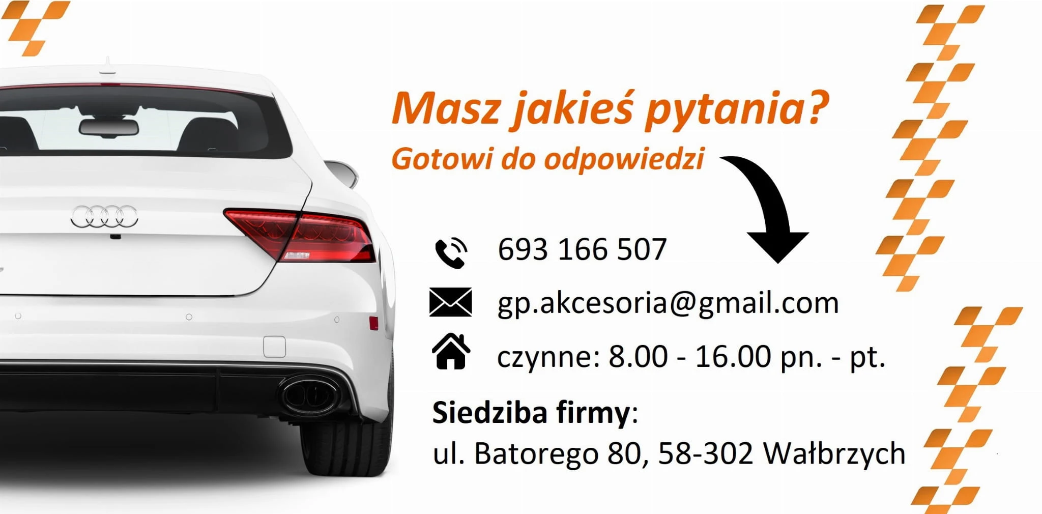 Administratorem danych osobowych jest GP Akcesoria samochodowe. Przetwarzamy je w celu przesłania odpowiedzi na zapytanie. Więcej informacji dotyczących przetwarzania danych osobowych znajduje się w polityce prywatności.